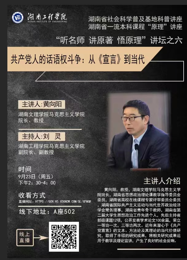 “听名师 讲原著 悟原理”讲坛之六---黄向阳教授主讲