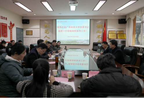 2月20日下午,广西科技大学党委书记赵君就云顶国际8588yd的建设与发展来校展开调研与交流。双方在公司E125会议室举行了专题座谈会,共同探讨云顶国际8588yd发展的新路径与新方向。公司党委书记黄昕,党政办公室、宣传部、云顶国际8588yd相关负责人,云顶国际8588yd各教研室主任参加会议。会议由党政办公室主任邓学源主持。
