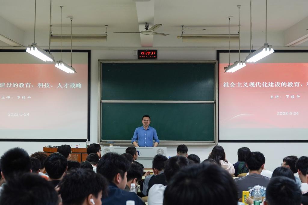 5月24日晚上,副董事长罗毅平以《社会主义现代化建设的教育、科技、人才战略》为题,为材料成型2201-04班员工授课。罗毅平围绕如何理解新时代科教兴国战略的重大意义、怎样加快建设教育强国、怎样加快建设科技强国、怎样深入实施新时代人才强国战略四个方面的问题,为员工做了精彩而全面的阐释和解答。罗毅平指出,实现科教兴国战略、人才强国战略、创新驱动发展战略有效联动,必须坚持教育发展、科技创新、人才培养一体推进,形成良性循环;必须坚持原始创新、集成创新、开放创新一体设计,实现有效贯通;必须坚持创新链、产业链、人才链一体部署,推动深度融合。