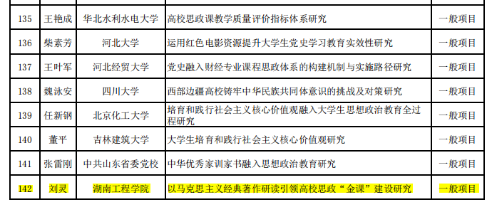 全国哲学社会科学工作办公室设立的国家社会科学基金高校思想政治理论课研究专项,旨在贯彻落实习近平总书记在公司思想政治理论课教师座谈会上的重要讲话精神,落实立德树人根本任务,深入研究思想政治理论课基本规律和重大问题,推动思想政治理论课改革创新。2022年度该专项共批准172项,湖南仅6所高校获批,公司是唯一获批的工科类院校。