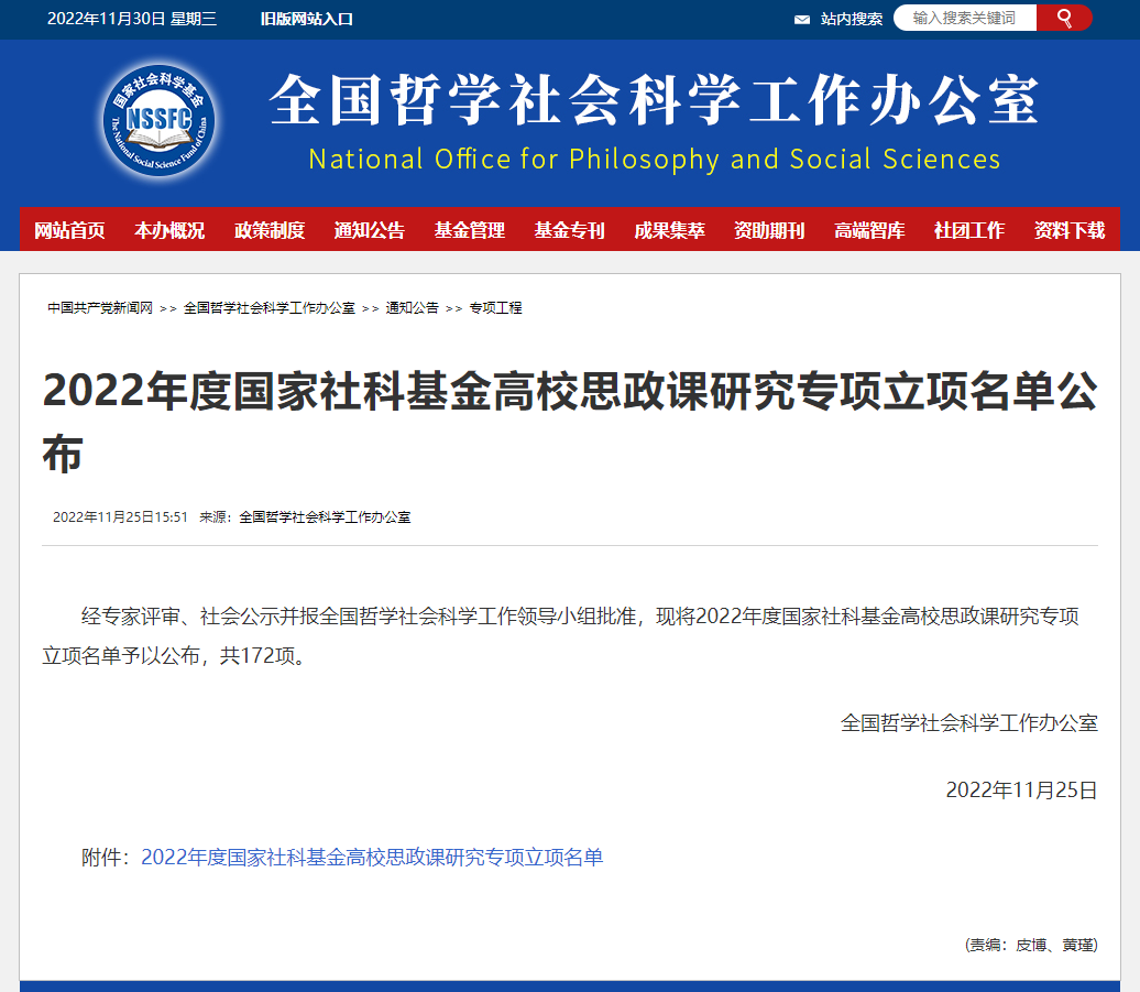 近日,全国哲学社会科学工作办公室公布了2022年度国家社科基金高校思想政治理论课研究专项立项名单。公司刘灵博士申请的“以马克思主义经典著作研读引领高校思政‘金课’建设研究”获批国家社科基金思政专项一般项目。