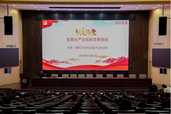 12月1日下午,公司教职工党课培训在一报告厅举行,党委书记陈岳堂围绕“制度治党——全面从严治党的重要保障”这一主题上专题党课,党委副书记宁立伟、纪委书记俞贵邦、正校级督导员娄炳林以普通党员身份参加学习,机关党委、计算机与通信公司、云顶国际8588yd200余名教工党员参加学习。