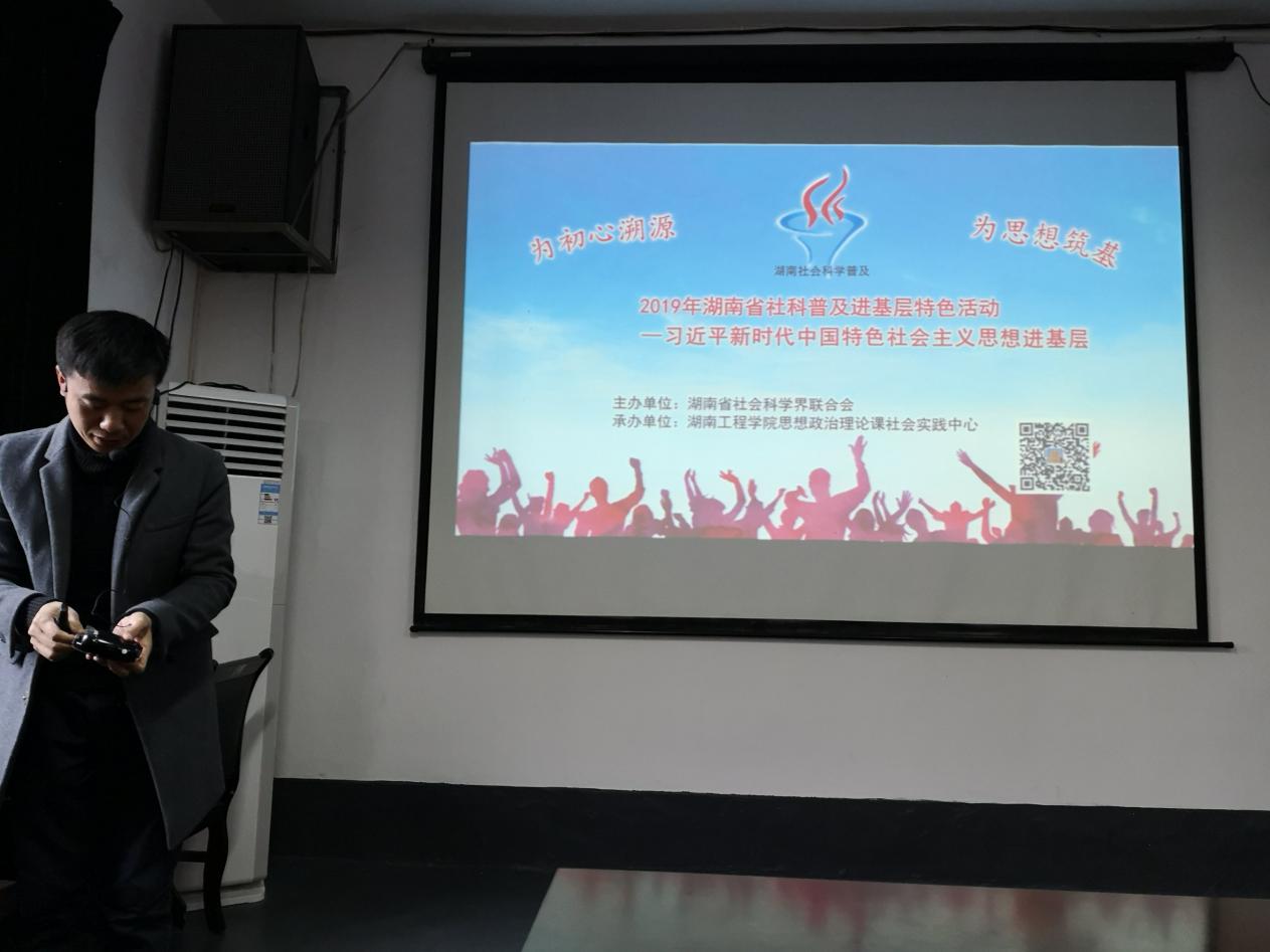 据悉,自云顶国际8588yd思想政治理论社会实践中心自获批省级科普基地以来已举办多场习近平新时代中国特色社会主义思想进基层宣传普及活动。基地成员刘灵博士还于12月7日赴长沙市高新区党群工作局、曾鹃教授于11月23日走进湘潭市图书馆为基层群众宣讲习近平新时代中国特色社会主义思想。他们把马克思主义基本原理、基本观点通俗化、具体化,使之更好地为人民大众所理解、所接受,达到了使习近平新时代中国特色社会主义思想入耳、入脑、入心的预期目标。