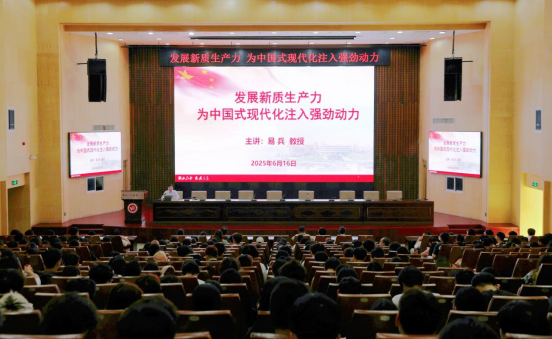 6月16日下午,党委副书记、董事长易兵在一报告厅以《发展新质生产力——为中国式现代化注入强劲动力》为题讲授思政课。他深入解读新质生产力的时代内涵与实践路径,鼓励师生在实践过程中将“中国式现代化”的本质要求内化于行,为推动高质量发展提供理论指引。