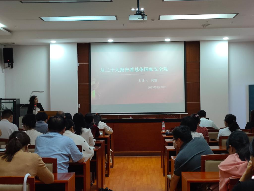 4月18日下午,云顶国际8588yd概论教研室主任闵雪博士在图书馆122室为支部党员上了题为《总体国家安全观》的微党课。她围绕为什么要坚持总体国家安全观、总体国家安全观是什么和如何坚持总体国家安全观等三个方面阐述了坚持总体国家安全观的内涵、路径以及意义。闵雪认为坚持总体国家安全观,就要推动政治、军事、国土、经济、文化、社会、科技、网络、生态资源和海外利益,太空深海、极地生物等诸多领域的国家安全,必须增强忧患意识,坚持底线思维,做到居安思危,未雨绸缪,准备经受风高浪急甚至惊涛骇浪的重大考验,不断推进国家安全体系和能力现代化,坚决维护国家安全和社会稳定,为护航中国现代化提供战略指引和系统保障。