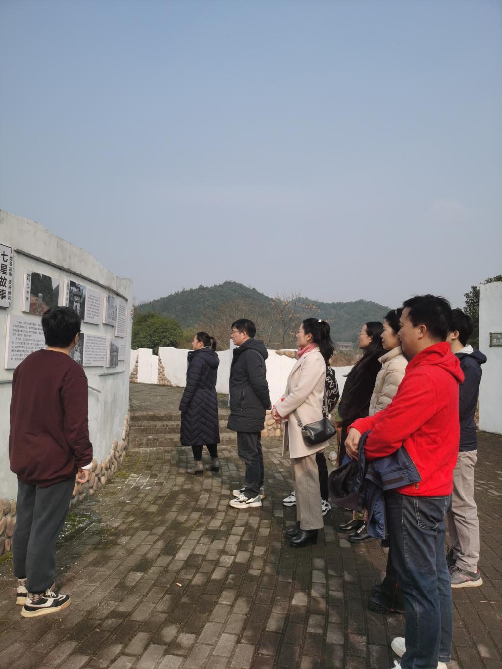 教工二支部书记田小玲在七星村乡村记忆馆门口以《七星村的故事》为题,为支部党员讲授了七星村的地理位置与历史沿革。随后 ,支部党员参观了昭山晴岚书院,书院内设置的风车、水车、蓑衣等农具,集聚了乡愁记忆、农耕文化,深深吸引了支部党员。