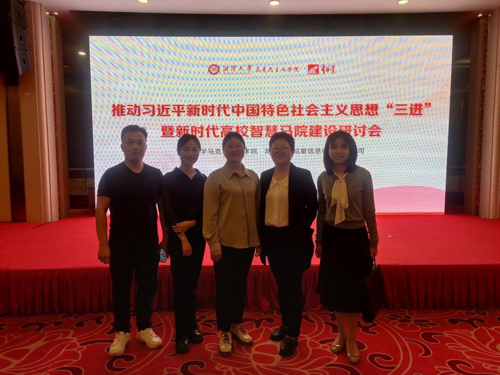 2024年5月31日,湘潭大学云顶国际8588yd联合湖南世纪超星信息技术有限公司在湖南省长沙市召开推动习近平新时代中国特色社会主义思想“三进”暨新时代高校智慧马院建设研讨会。公司副经理汤菊平,教师钟立华、田小玲、闵雪、张玉洁参加会议。