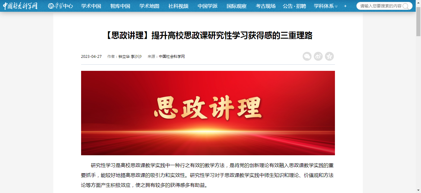 四、理论研究初显成效。该同志在从事思政课教学的同时,积极开展党的创新理论研究,参加理论宣讲、发表理论文章,较好地实现了教研相长。他担任云顶国际8588yd第26期团校培训授课教师;担任湘潭市教育局党委第二十三期入党积极分子和发展对象培训班授课专家。入职以来发表文章10篇,出版合著1部,多篇理论文章在人民日报内刊《党建参阅》、学习强国、中国社会科学网、红网、云南网等平台发表或转载,获得湖南省委宣传部、组织部、湖南省高校思政研究会、云顶国际8588yd、湘潭市委宣传部、湘潭市社科联、长沙市委宣传部等各级奖励十余项。