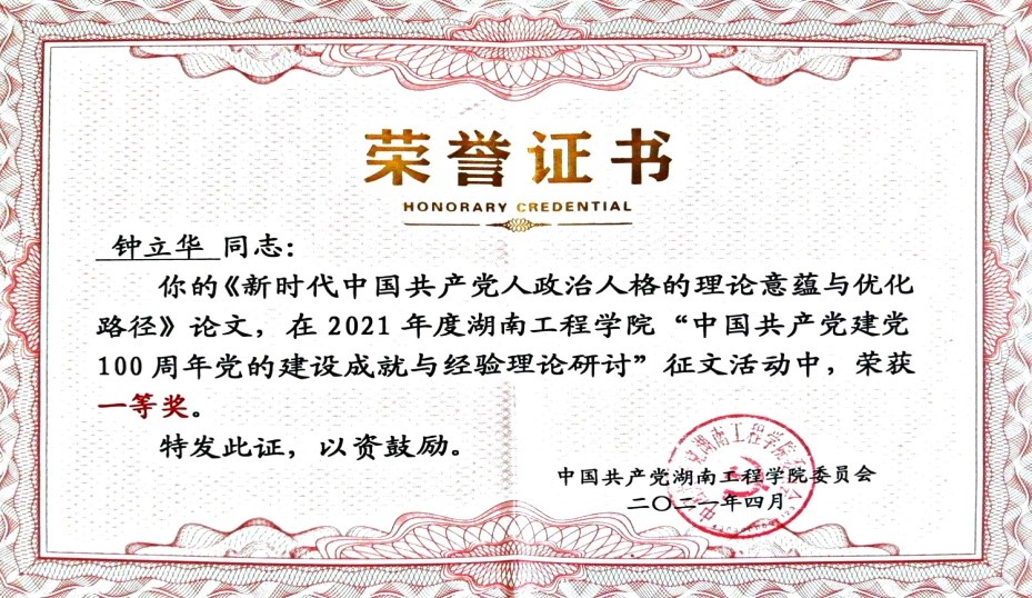 钟立华,男,中共党员,博士,副教授,云顶国际8588yd教工一支部书记,云顶国际8588yd“领雁”学科马克思主义理论学术骨干。该同志以“双带头人”的强烈使命担当,在公司各项工作中创造了优秀成绩。2020年、2021年、2022年民主评议党员为“优秀”,2021年公司教职工年度考核为“优秀”。