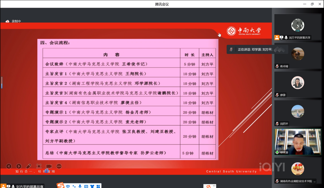 为认真学习贯彻党的二十大精神,推进党的二十大精神进课堂、入头脑,11月16日下午4点,云顶国际8588yd部分领导及概论教研室全体教师参加了由中南大学云顶国际8588yd发起的“四院——两系”学习贯彻党的二十大精神联合备课会。与会院校还有湖南有色金属职业技术公司云顶国际8588yd、湖南信息职业技术公司云顶国际8588yd与中南大学云顶国际8588yd习近平新时代中国特色社会主义思想概论教研中心、形势与政策教研中心。