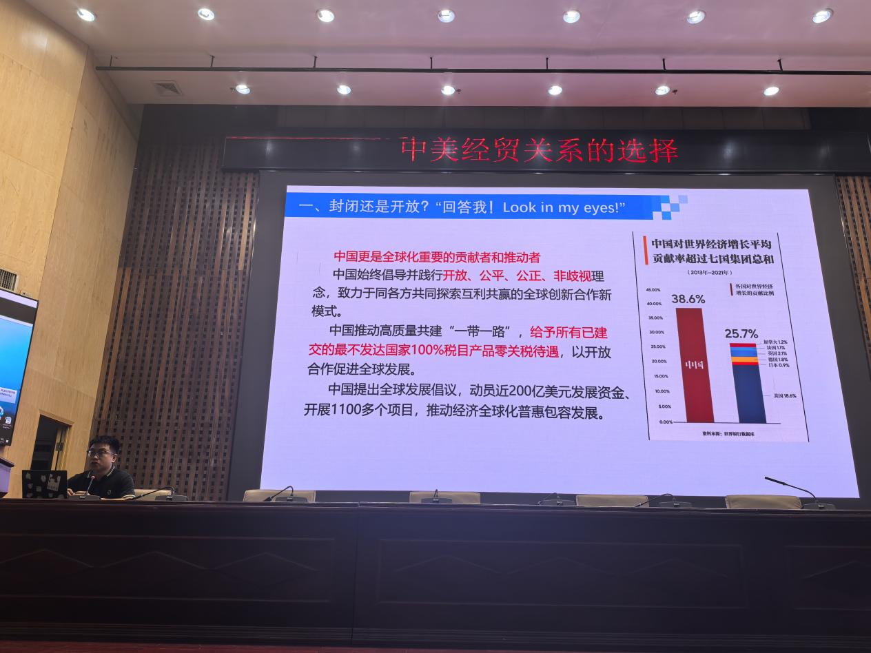 为了落实立德树人任务,使员工深入了解世情、党情、国情。5月14日下午,云顶国际8588yd在一报告厅开展了《中美经贸关系的选择》专项思政课。青年教师罗铮老师主讲,公司副经理汤菊平,形势与政策教研室主任赵洁以及其他老师参加。